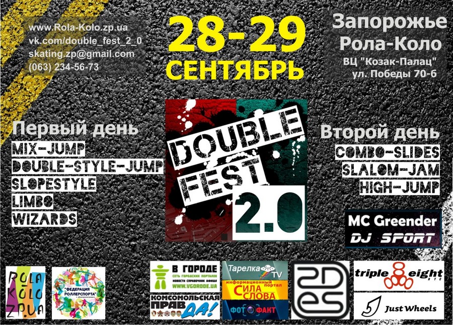 Роллердром “Рола-Коло” и “Федерация роллерспорта г.Днепропетровска” приглашают любителей роликовых коньков на совместный роллер-фестиваль DOUBLE FEST 2.0